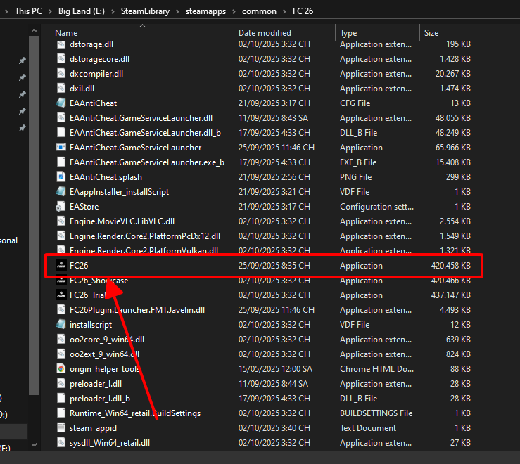 Lần sau chỉ cần click biểu tượng FC26 vừa được đổi tên để vào game (không cần ở Steam).